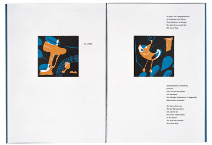 Frank Wahle: 5 Farblinolschnitte 1998 6 Bl. Broschur 50 num. u. sign. Exemplare Druck: Matthias Kleindienst, Leipzig Schrift: Rotis sans serif bold Gestaltung: Lurette Oberberg