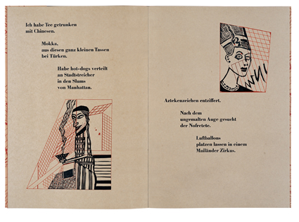 15 zweifarbige Linolschnitte von Volker Pfüller 1998 8 Bl. Broschur 50 num. u. sign. Exemplare Gesamtherstellung: Grafische Werkstätten der Hochschule für Grafik und Buchkunst Leipzig Schrift: Bodoni-Antiqua halbfett Gesamtgestaltung: Volker Pfüller