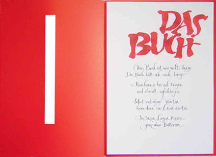 Gestaltung und Herstellung : Frank Eilenberger. 3 Bll., 310 x 210 mm. Leipzig 2011. Auflage: 250 numerierte und von der Künstlerin signierte Exemplare
