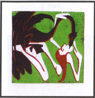 Zaumseil "Schwanenkuß" Farbholzschnitt (3 Platten) 2006 |