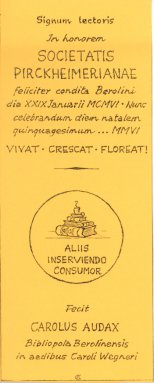 Buchkuriosa und Wolfgang Rasch. Thema und Referent hatten am 19. Januar trotz eisiger Kälte besonders viele Interessenten zum ersten Abend der Berlin-Brandenburger Pirckheimer im neuen Jahr in die Zentral- und Landesbibliothek geführt. Über viele Jahre hinweg hat Wolfgang Rasch eine stattliche und vielgestaltige Sammlung kurioser Buchobjekte zusammengetragen und vieles, wenn auch nicht die schwersten und größten Stücke, in einem großen Koffer aus Frankfurt am Main mitgebracht. Als er die zunächst verdeckten Schätze gleich zu Beginn der Betrachtung überließ, lief ein hörbares Erstaunen über die gespannten Gesichter. Es wurde ein höchst vergnüglich-amüsanter Abend, zumal die Exponate reihum wanderten, und in die Hand genommen werden konnten und auch von humorigen Anmerkungen des Sammlers zu den Verschrobenheiten und Bürden der Aufbewahrung begleitet wurden. Heiterkeit erfüllte den Kleinen Säulensaal. Kuriositäten erklären sich weitestgehend selbst: runde Bücher, ein Teefilter- und ein Kaffeefiltertütenbuch, ein Spitznasenbuch (natürlich Collodis Pinocchio), Der Witzigmann, Kochbuch des Starkochs, eine üppige Schmonzette, worin zum Beispiel „Hummer über Nudeln schreitet“, Minibücher, Kettenbücher, Beutelbücher, samt- und oasenledergewandete Luxusexemplare (Thomas Mann in Hellblau), ein aufblasbares, tauchtaugliches Buch mit absolut wasserfestem Papier, holz- und blechgewandete Bücher, ganz und gar Fragwürdiges wie Nudel- und Dudelkästchen mit Buchstaben, beiläufig war da vom „Suppen-Goethe“ die Rede … Wolfgang Rasch hatte seine Betrachtungen reizvoll gegliedert: Essen und Trinken / Merkwürdige Formate / Groß und klein / Einbandstoffe / Sex. In allen Abteilungen fanden sich Stars unter den Erwählten. Erwähnt sei aus der Fülle Raschs „kleinstes Buch der Welt“, ein in Tokio erstandenes, nicht lesbares handgearbeitetes Alphabet von A bis Z, ein „Krümel“ nur, immerhin unseren Pirckheimer-Freund Elmar Faber sprachlos werden lassend, der ja im Verlag Edition Leipzig 1971 Egon Pruggmayers Bilder-ABC auch als „kleinstes Buch der Welt“ ediert hatte. „Aber das tatsächlich allerkleinste kennt keiner …“ Hervorgehoben präsentierte Wolfgang Rasch neben anderen das monströse Leporello Auf den Leib geschrieben mit einem Text von Wolfgang Neuss, ein „Beitrag zum schwarzen Humor“ von Ali Schindehütte und Arno Waldschmidt, einst als Merlin-Leporello 4 erschienen und seit Jahrzehnten schon im Besitz des Sammlers in der Abteilung Sex. Der österreichische Stadtverlag edierte 1981 eine Drudenfuß-Monographie des Professors Otto Stöber, ein fünfeckiges wissenschaftliches Standardwerk, auf dessen Format der Autor unbedingt bestand. In der Edition Quadrat erschien 1996 der Wolkenkratzer-Band new york vertikal, ein Buch über Manhattan mit wunderbaren Schwarzweißfotos von Horst Hamann. Ein schmales Hochformat im Quadrat-Verlag: durchaus kurios. Erwähnt sei schließlich das liebevoll vorgestellte Minibüchlein, das der Sammler nach jahrelanger vergeblicher Suche endlich doch erwischte: ein winziges Vaterunser auf rotem Samtkissen, nur mit der Lupe mühsam zu lesen, das im Jahr 2000 anläßlich des 600. Geburtstages von Gutenberg für 75 Mark zu erwerben war und aus einer beim Aufräumen zufällig entdeckten Kiste im Keller des Gutenberg-Museums Mainz stammte. Die völlig vergriffen geglaubte Auflage war in den fünfziger Jahren als Baustein bestimmt, als das Museum nach der Kriegszerstörung neu erstand. – So erzählen auch Kuriosa Geschichten und Schicksale, wenngleich nicht alle und auch nicht ohne die hilfreiche Stütze des Sammlers. Mit herzlichem Beifall und einer Radierung von Dieter Goltzsche bedankten sich die Anwesenden. Ursula Lang Das Mädchen und der Tod – meine Totentanzsammlung hatte der Mediziner und langjährige Vorsitzende der Pirckheimer-Gesellschaft Prof. Dr. Wolfram Körner den Vortrag genannt, den er am 16. Februar vor den Berlin-Brandenburger Mitgliedern in der Zentral- und Landesbibliothek Berlin hielt und mit dem er einen umfangreichen Teil seiner eindrucksvollen Sammlung vorstellte. Er hat diesem Thema schon seit seiner Studienzeit Aufmerksamkeit gewidmet, und so umfaßt die Sammlung – ein Teil seiner Erotica-Sammlung insgesamt – heute rund 300 Objekte mit mehreren Regalmetern Stellfläche. Sie erstreckt sich von literarischen Texten über Exlibris bis zu Kleinplastiken, den Hauptteil bilden jedoch originalgraphische Blätter. Er hat die vorhandenen Werke nicht systematisch zusammengetragen, aber sie sind katalogisiert und um Nachweise von Totentanzdarstellungen ergänzt, die bei ihm nicht vertreten sind. Seine Ausführungen berührten viele Aspekte des Gebietes, darunter Hinweise auf internationale Organisationen, Tagungen, Ausstellungen und Kataloge. Daß die Fragen um Werden und Vergehen, insbesondere um unerwartetes und viel zu frühes Sterben, die Menschen durch die Zeiten und über Ländergrenzen hinweg immer aufs Neue bewegten und zur Gestaltung angeregt haben, bezeugen die Texte und Bilder von zahllosen Dichtern und bildenden Künstlern. Wolfram Körner nannte unter anderen – zum Teil mit Zitaten – Luther, Gryphius, Hofmann von Hofmannswaldau, natürlich auch Lessing und Matthias Claudius sowie Busch, Bierbaum, Rilke und Bachmann. Der Bogen der bildenden Künstler reichte von Hans Sebald Behaim bis zu vielen Künstlern des 20. Jahrhunderts wie Kollwitz, Masereel, Grieshaber, Janssen, Rubin, Volkamer und schloß darüber hinaus auch Fotografien, Comics und Musik nicht aus. Vielfältig sind die Eigenschaften und die Attribute, mit denen der Tod jeweils gezeigt wird. Einige Blätter der Körnerschen Sammlung sind uns schon vor einigen Jahren in der Jahresgabe Büchermädchen. Erotische Exlibris (1999) begegnet, und sehr frühe Pirckheimer-Mitglieder erinnern sich noch der von unserem Mitglied Heiner Vogel illustrierten Jahresgabe 1966 – Gorki: Das Mädchen und der Tod (1961). Wolfram Körner führ