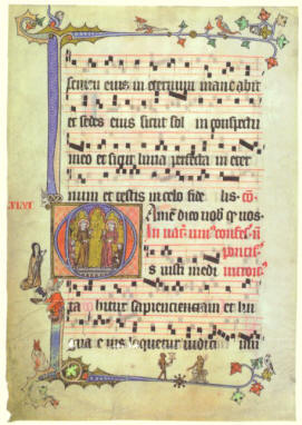 historisierende Initiale mit einer Franziskus-Disputation zum Introitus Os iusti